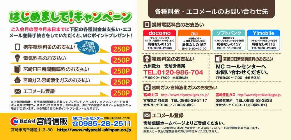 宮崎信販では、新規カードご入会者様限定「はじめましてキャンペーン」を実施しております。